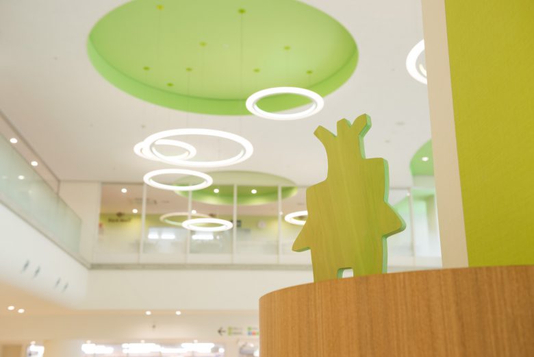 エントランスのシンボルアートは「百色の木-momoironoki-」こどもたちが切り紙をした形をモチーフにしました。