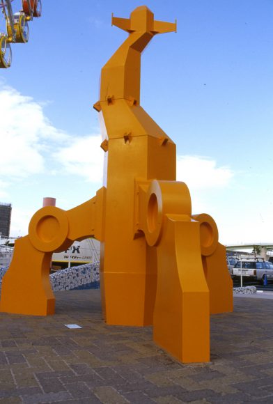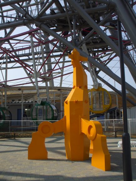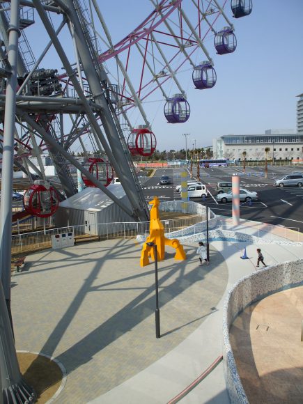りんくうのランドマークである大観覧車 -りんくうの星-の下に、モニュメント「イエローランチャー」