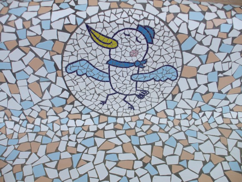 施設のキャラクターたちが登場する楽しいモザイクベンチを設置
