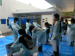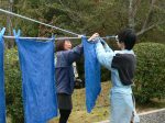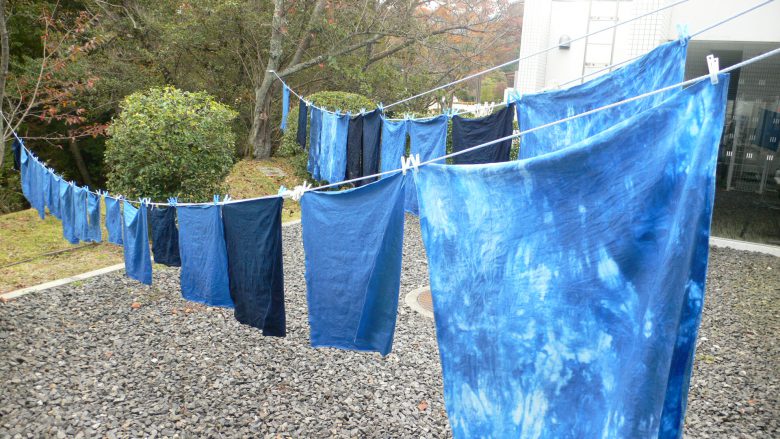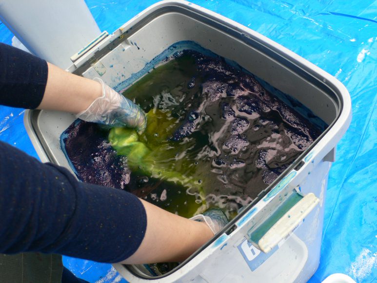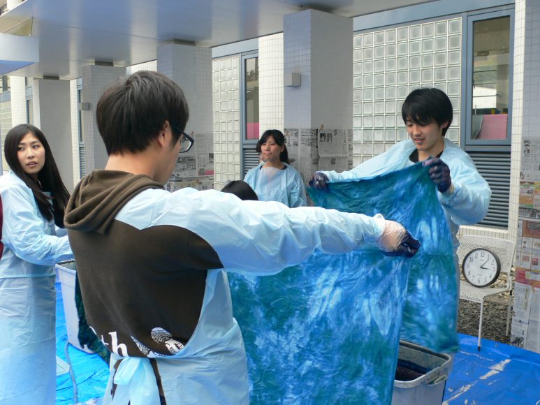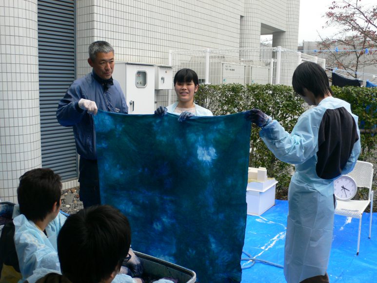大学生と一緒に広島産のデニム生地をスクールカラーのインディゴブルーに染める