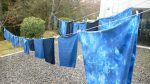 ワークショップを行いました。濃淡様々な色を使用する予定で、合計56枚染めました。