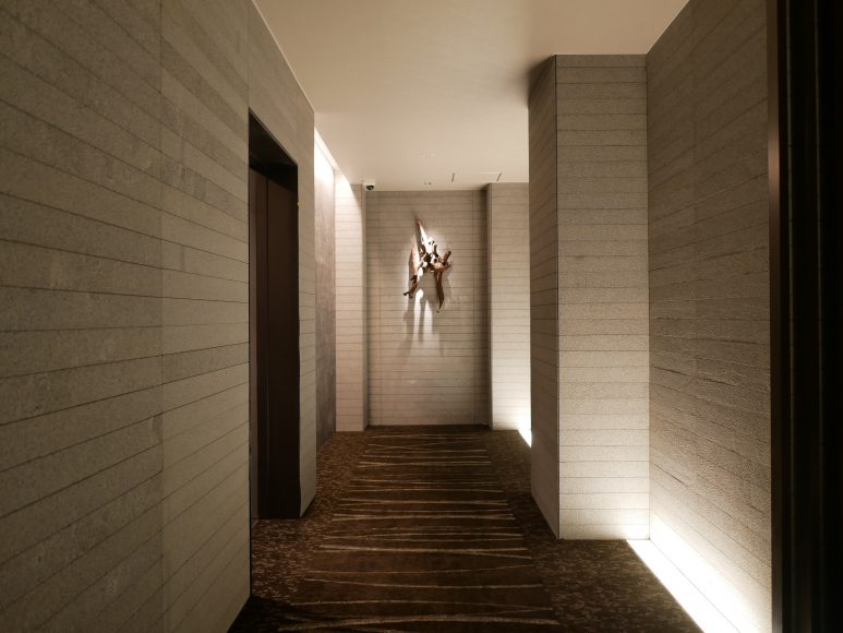 エントランスホール、アートホール、コリドー空間に従前地に残された黒松をアートワークとして継承します。