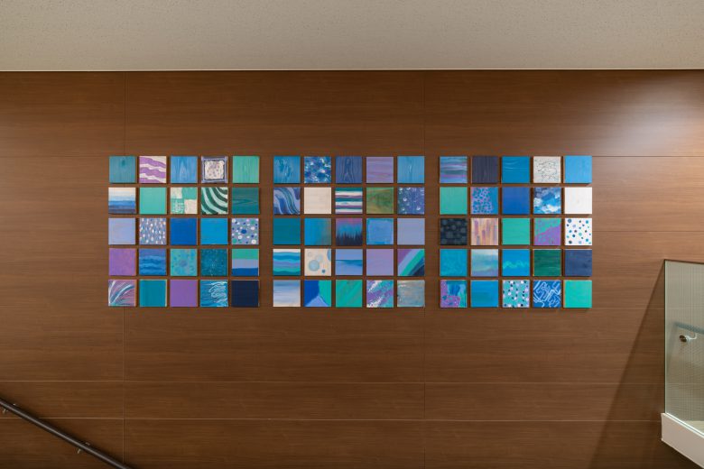 ペイントワークショップで制作した市民参加よる手作りの木製アートを
