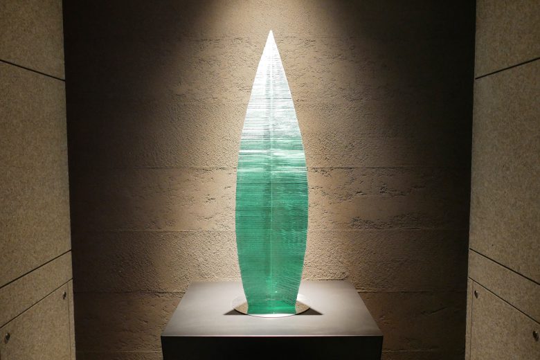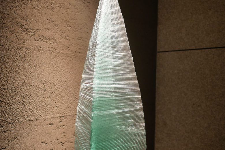 光と影と水の輝きを表現する積層ガラスオブジェ。