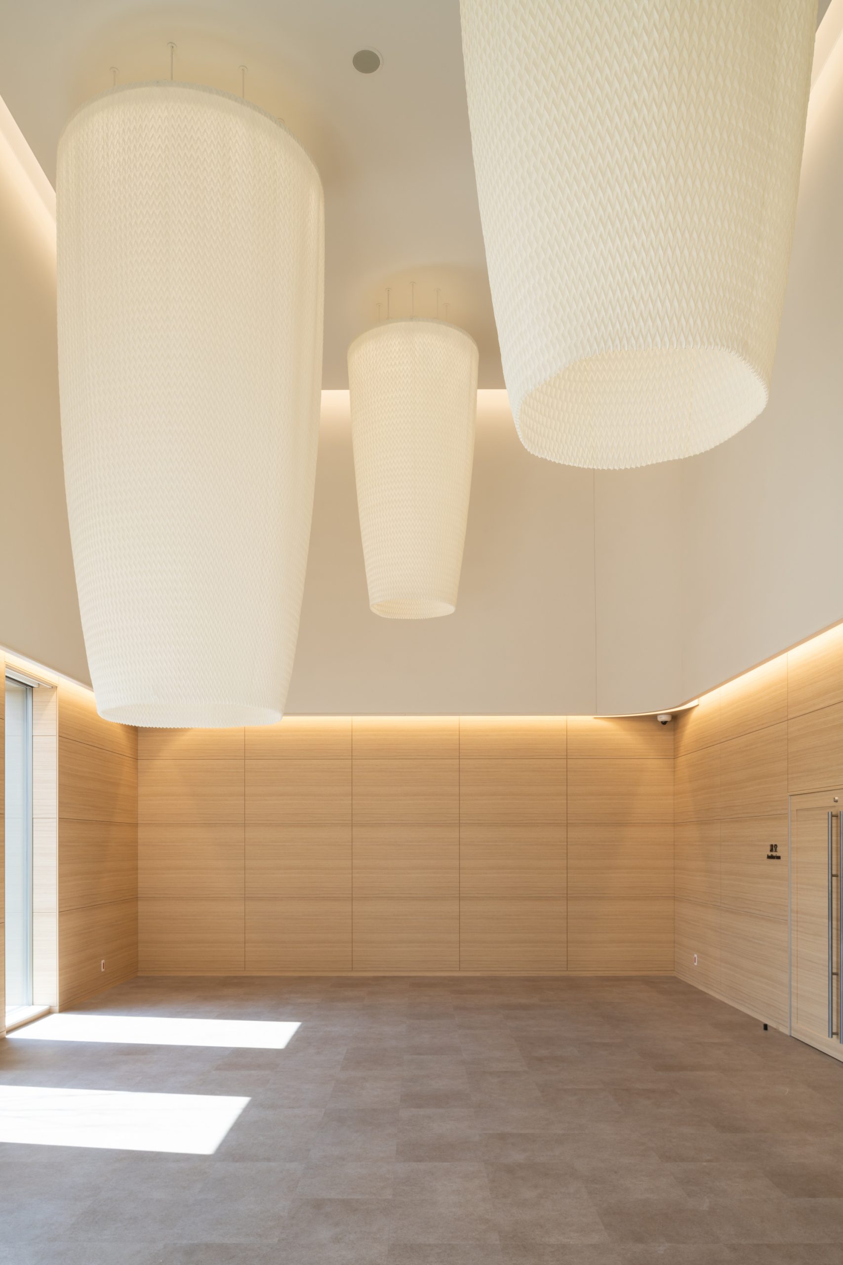 人々に寄り添い灯る「いのちを内包する繭」をイメージし柔らかな空間づくりを目指しました。