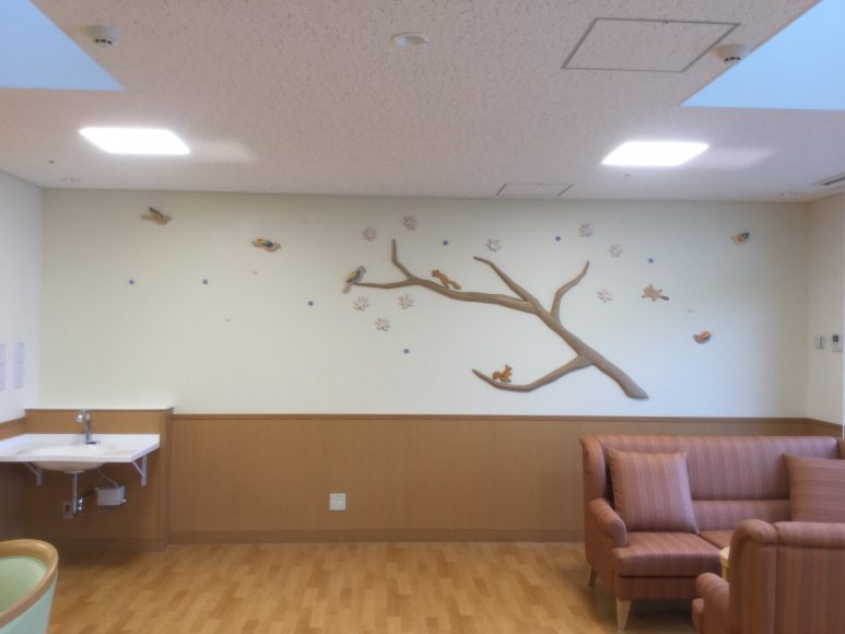 HOME > ART WORKS > 医療福祉 > JA愛知厚生連海南病院 JA愛知厚生連海南病院 緩和ケア病棟には季節や行事によって、利用者の方々が自由にアレンジできる マグネットが付いたの木工アートや、春夏秋冬掛け替える染色パネルを入れました。 アーティスト : 下山肇 小笠原まき 外山雄一 佐藤律子 吉村直美 ヒラタシノ